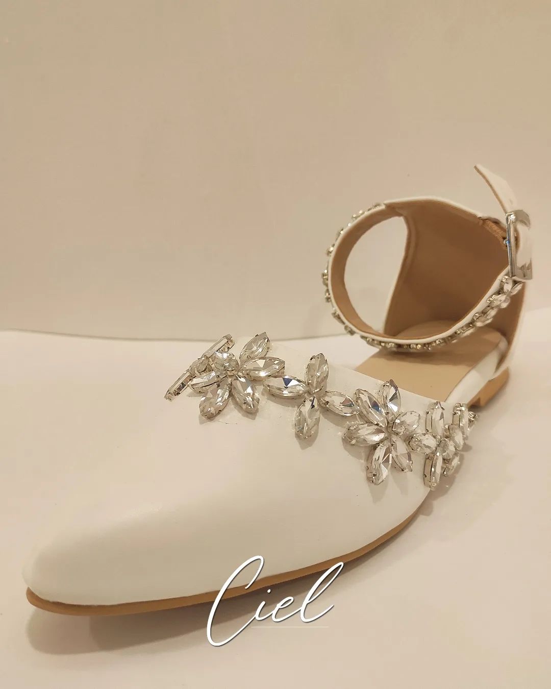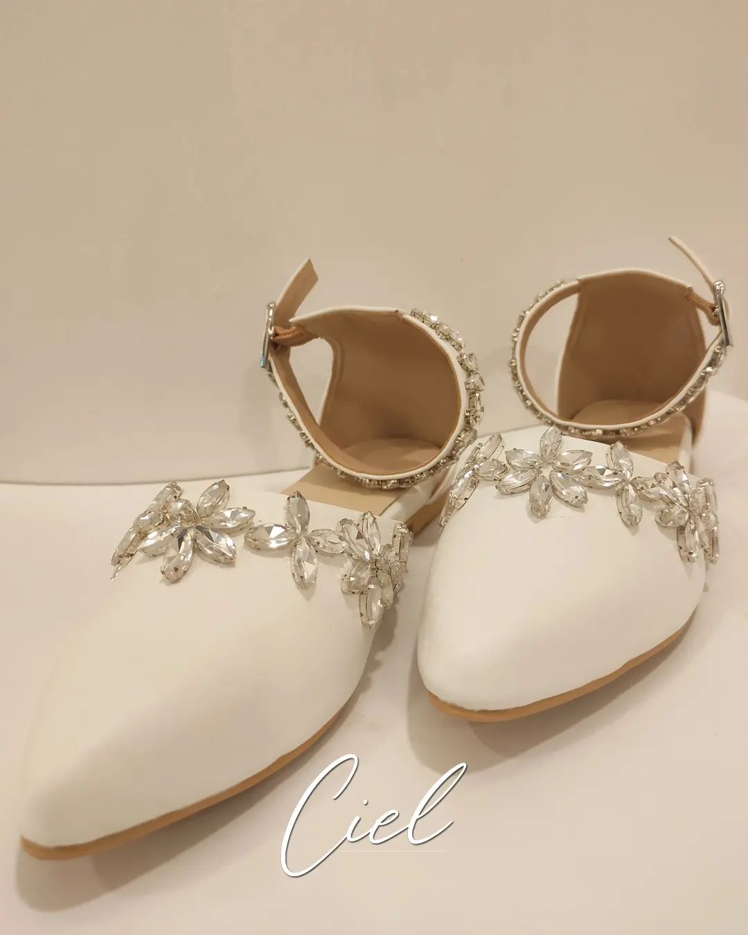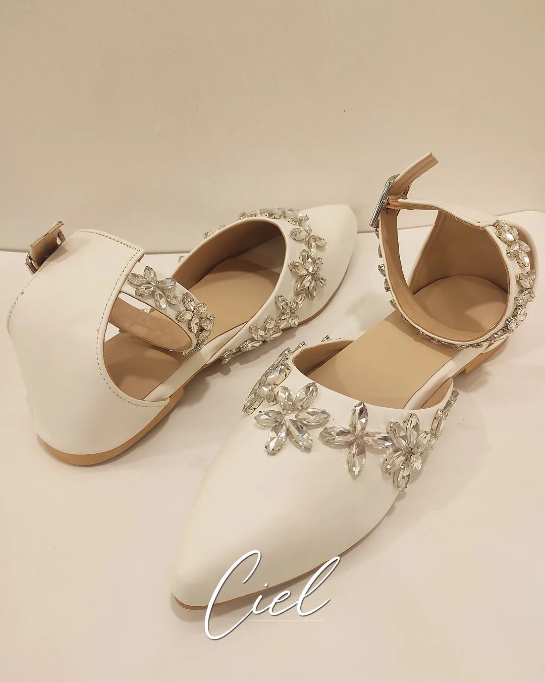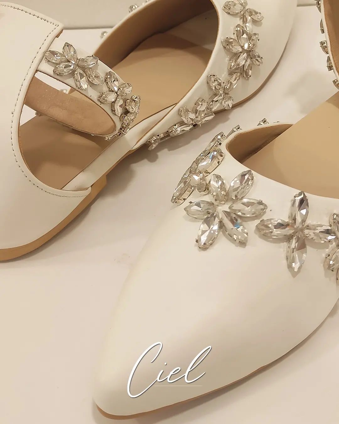 Curated In Ivory Vegan Leather Embedded With Crystals & Rhinestones Paired With Embedded Ankel Strap To Give A Comfort Fit & Extra Cushioning